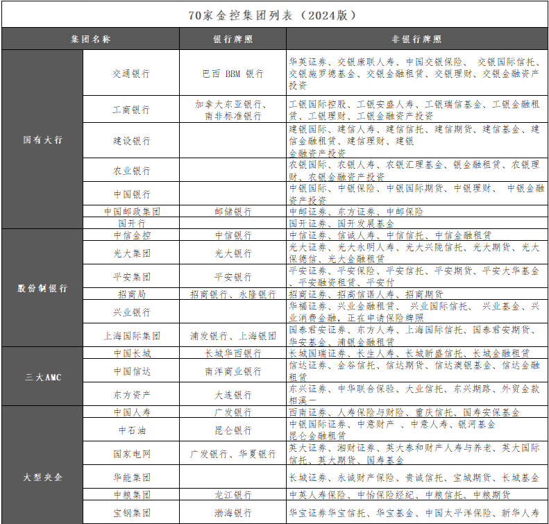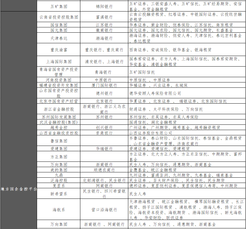 我国已经形成了包括中信、光大、平安金控集团等数十家央企控股的大型金融控股集团,包括央企产业资本的招商局、中石油和国家电网等;银行系的工农中建交,通常资产庞大,掌握核心产业和资源,金融牌照已基本囊括齐全。