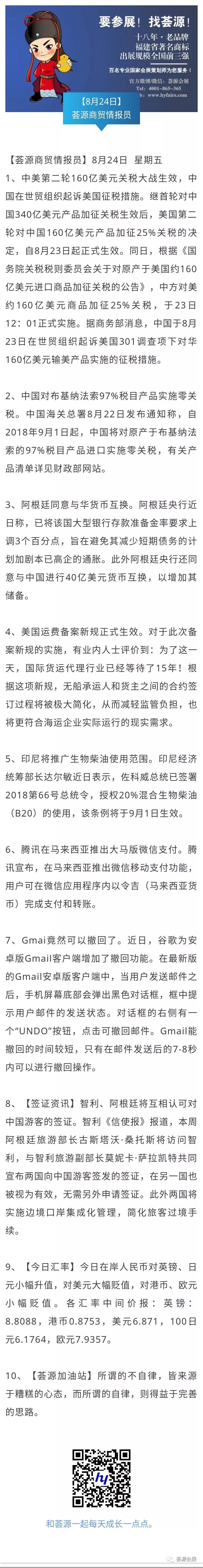 【荟源商贸情报员】8月24日分享