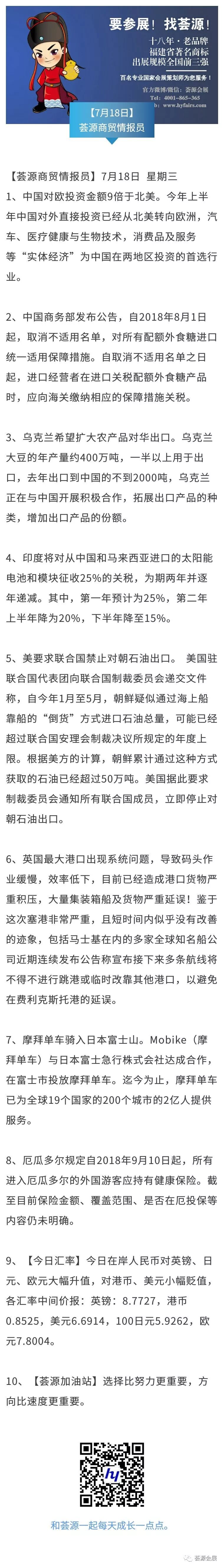 【荟源商贸情报员】7月18日分享