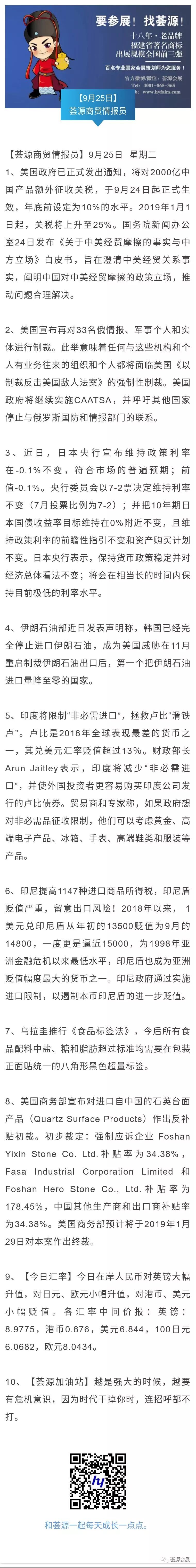 【荟源商贸情报员】9月25日分享