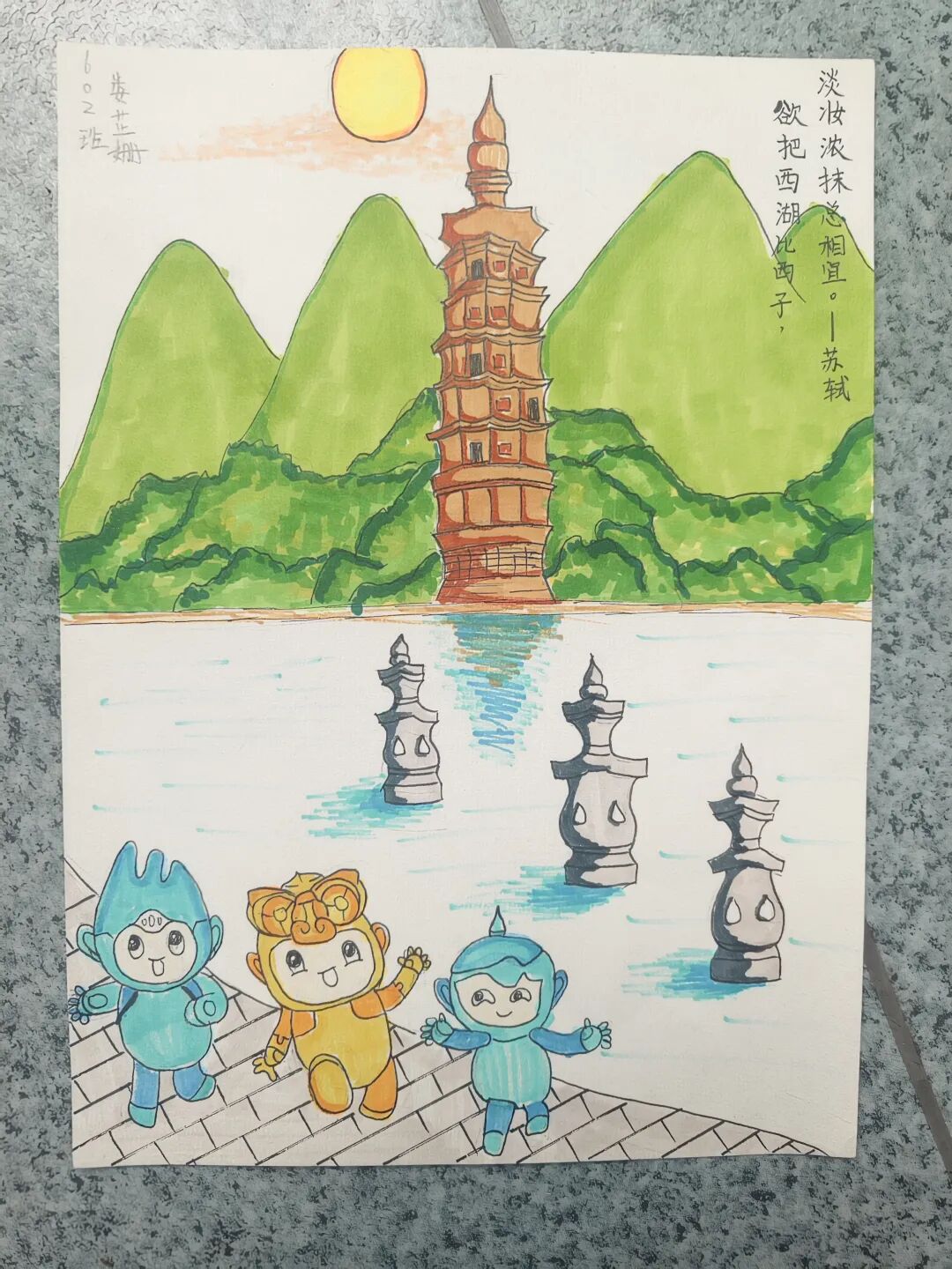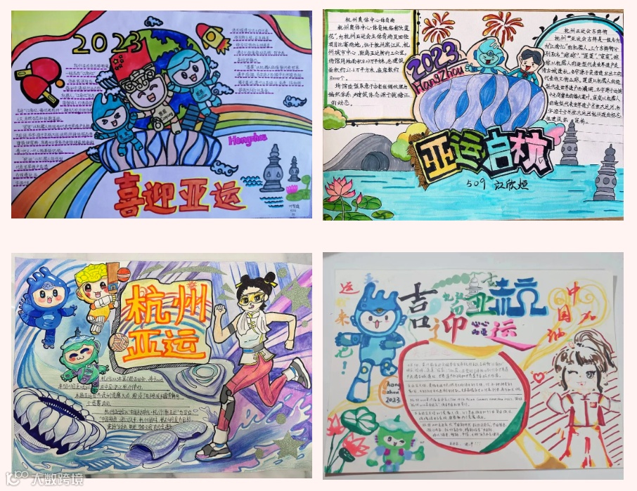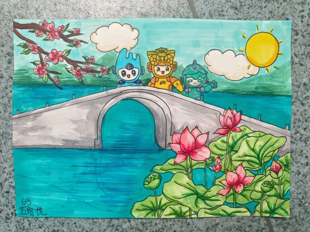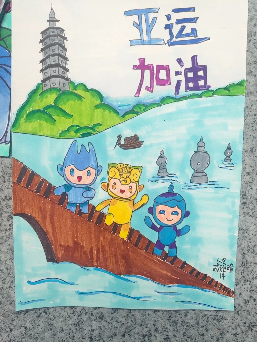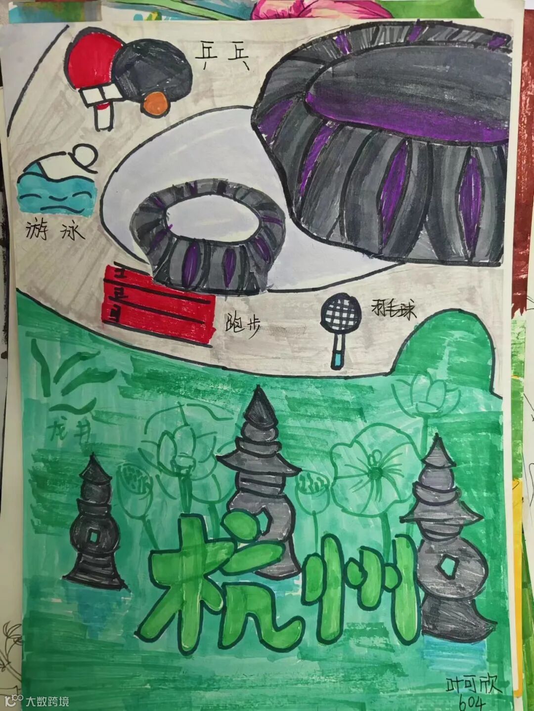 让我们看看孩子们的作品,感受他们对杭州亚运会的期待。