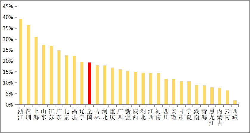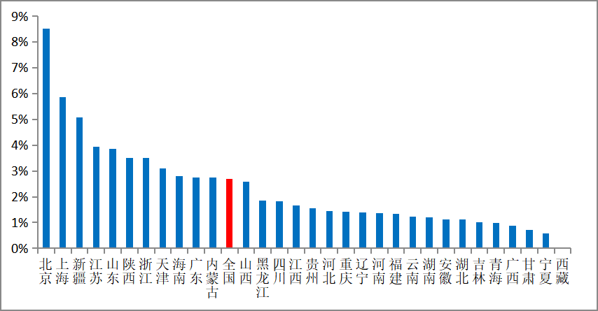 图1-4 2022年各省市商业承兑汇票发生额/GDP情况
