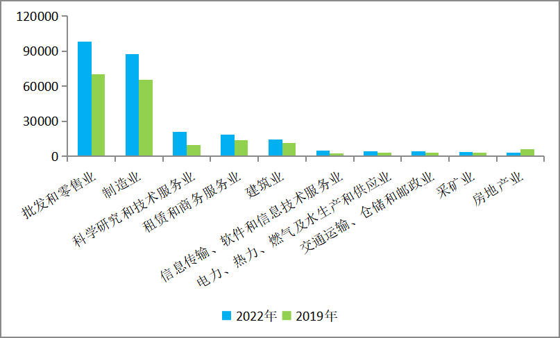 3、批发零售、制造业22年银票、商票发生额与19年变化分析