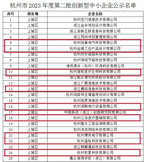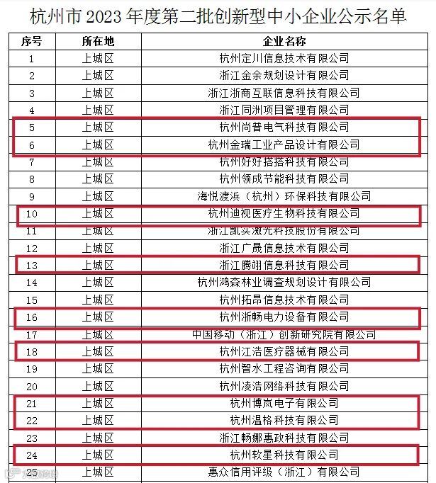 近日,市经信局公示杭州市2023年度第二批创新型中小企业评价结果,智慧城共9家企业上榜。