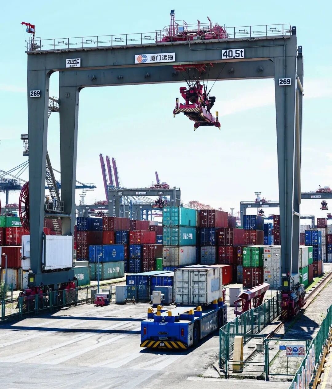 自动化轨道吊(ASC)行云流水: 巨大的机械臂在程序控制下精准定位、抓取、堆叠集装箱,作业精度和速度远超人工。
