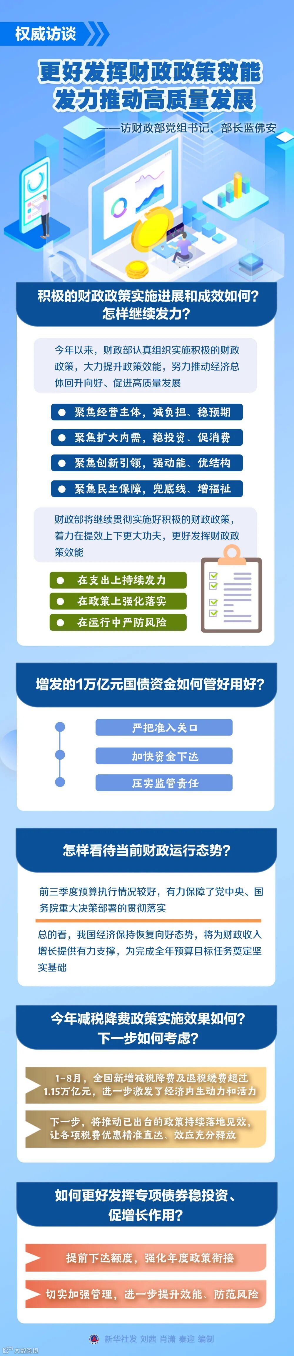 财政政策是国家宏观调控的重要手段。下一步,财政政策还将如何发力?增发的国债怎样用好?财政运行态势如何?新华社记者采访了财政部党组书记、部长蓝佛安。