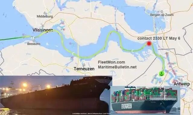 两艘船都停在Vlissingen外锚地,而“EVER GLOBE”在5月7日早上恢复了前往汉堡的航行,“KRITI EMERALD”在5月7日下午15时仍在锚地,它正在前往普里莫尔斯克的途中。