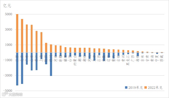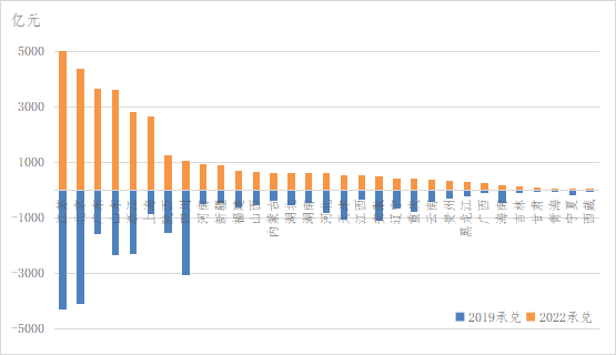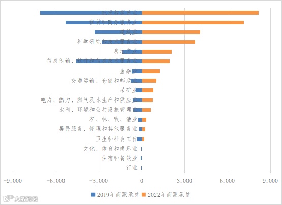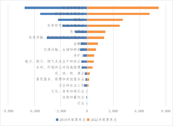 图5 2019年和2022年前十大用票行业商票承兑情况对比分析