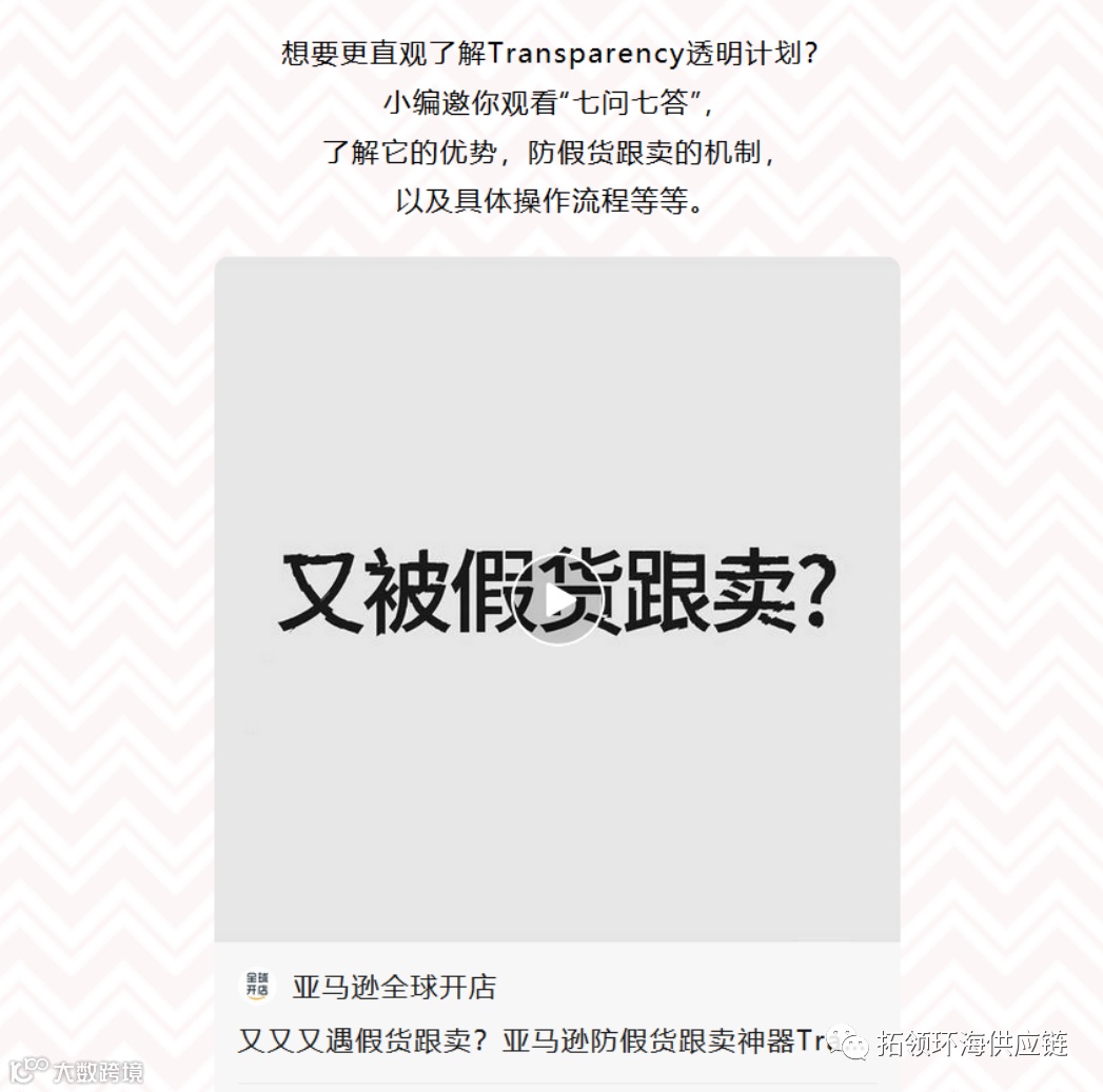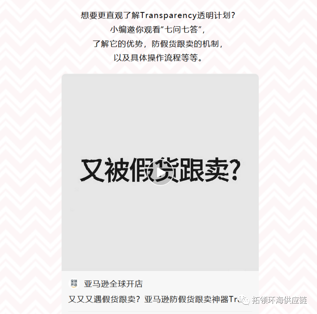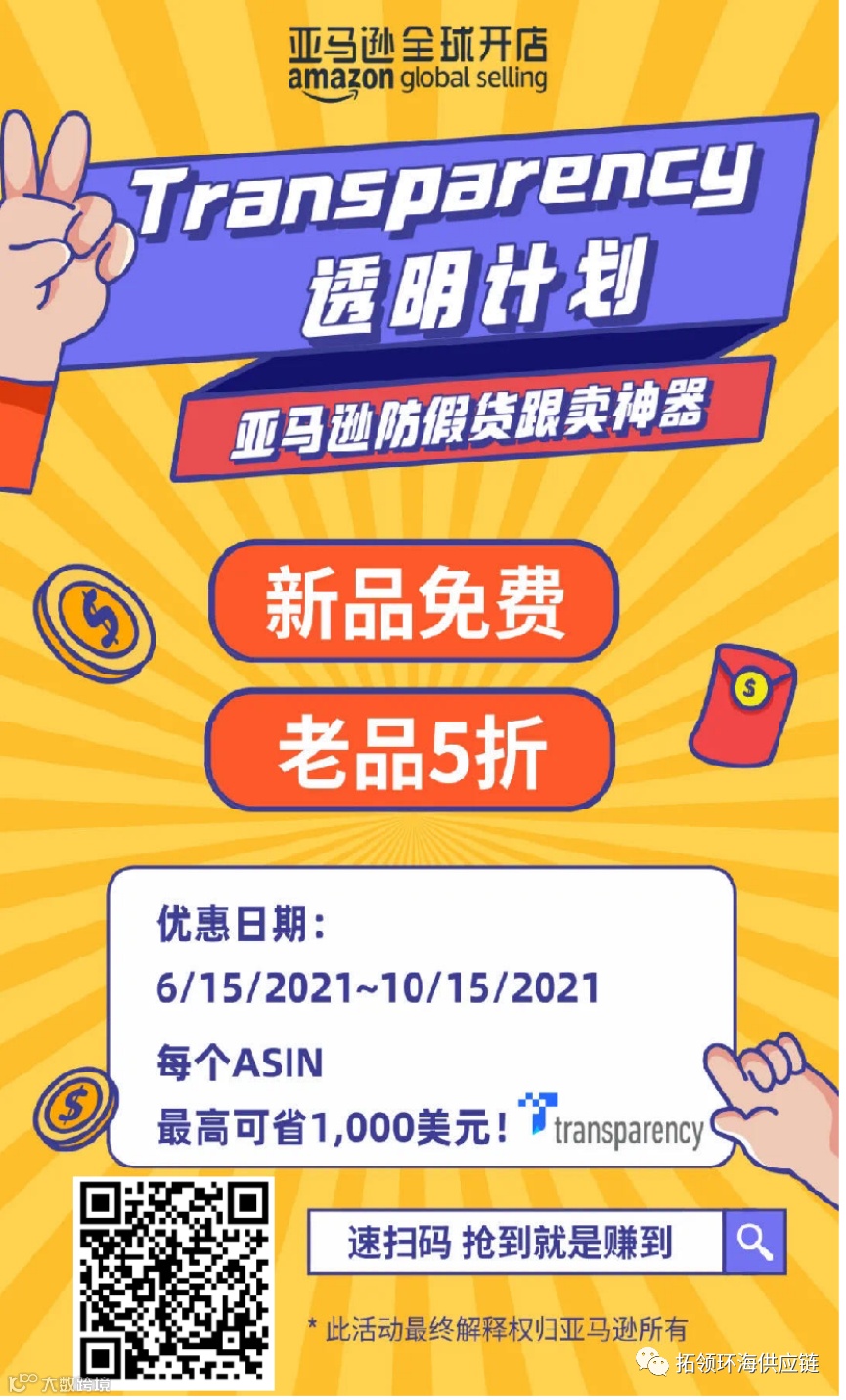 减负运营压力:无论商品是用FBA还是卖家自配送,都能高效防止假货跟卖。商品入库的时候,FBA 仓库会检查每件产品是否正确贴好 Transparency 的条码,否则不能入库。自发货的产品,亚马逊也同样要求卖家提供 Transparency 条码进行检查。