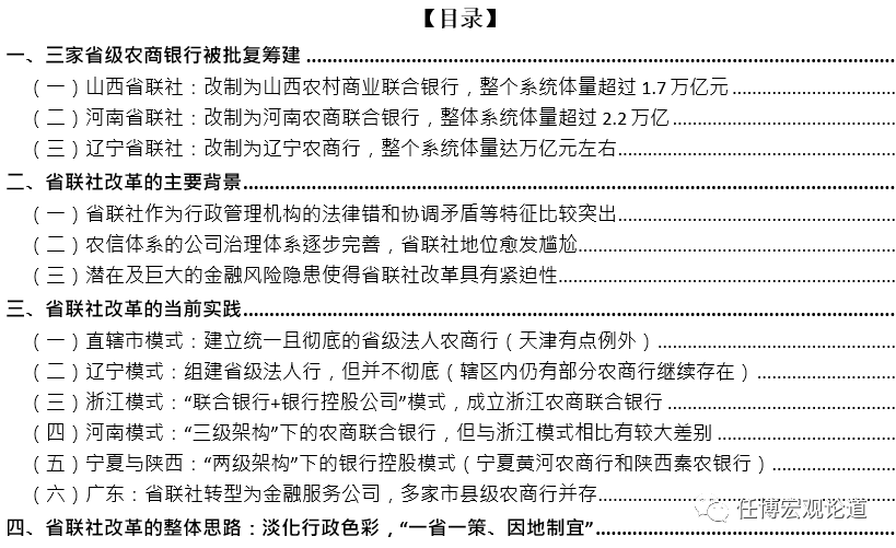 (三)这里的“一省一策、因地制宜”原则实际上是,借助于省联社改革这一进程,把农信系统的改革融合在一起,以全面推动地方中小银行深化改革、化解风险,维护好区域金融稳定。至少从目前看,山西、河南、辽宁等地区的省联社改革是秉持着这种思路的。