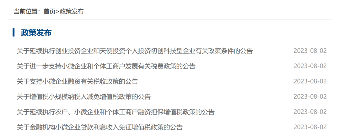 8月2日,财政部网站消息,财政部、税务总局连续发布6条公告,进一步调整优化小微企业和个体工商户发展、融资相关税收优惠政策。