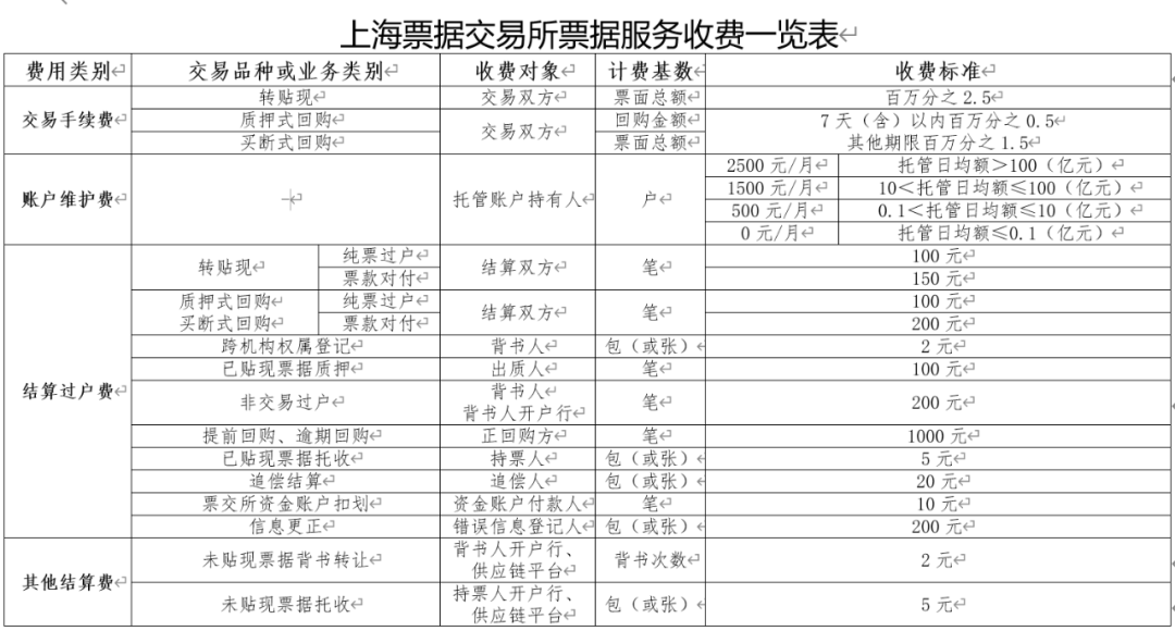 2023年10月24日,上海票据交易所发布《关于印发<上海票据交易所票据服务收费办法>的通知》,对原《上海票据交易所票据有偿服务收费办法》进行修订,并发布最新的票据服务收费标准。