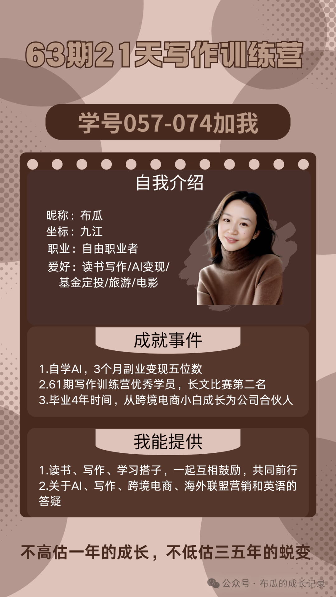 关注 ▲布瓜的成长记录▲ 一起成为自由富足的人