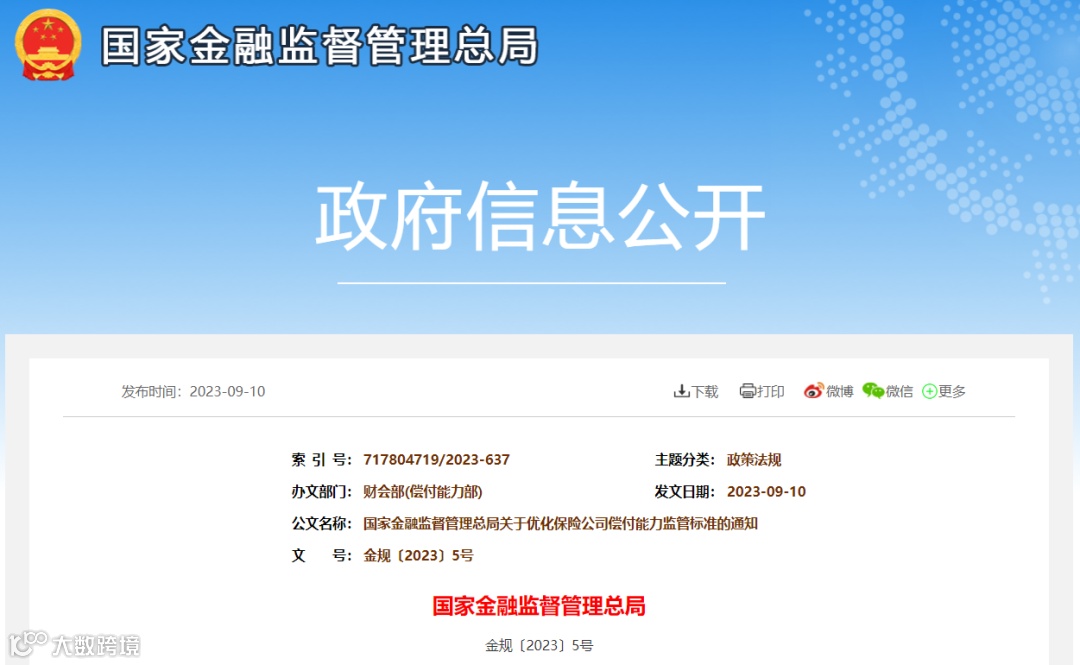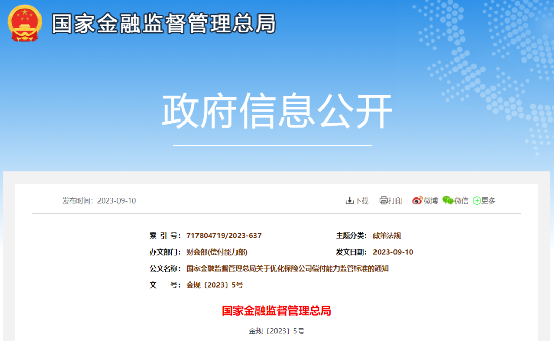 国家金融监督管理总局关于优化保险公司偿付能力监管标准的通知