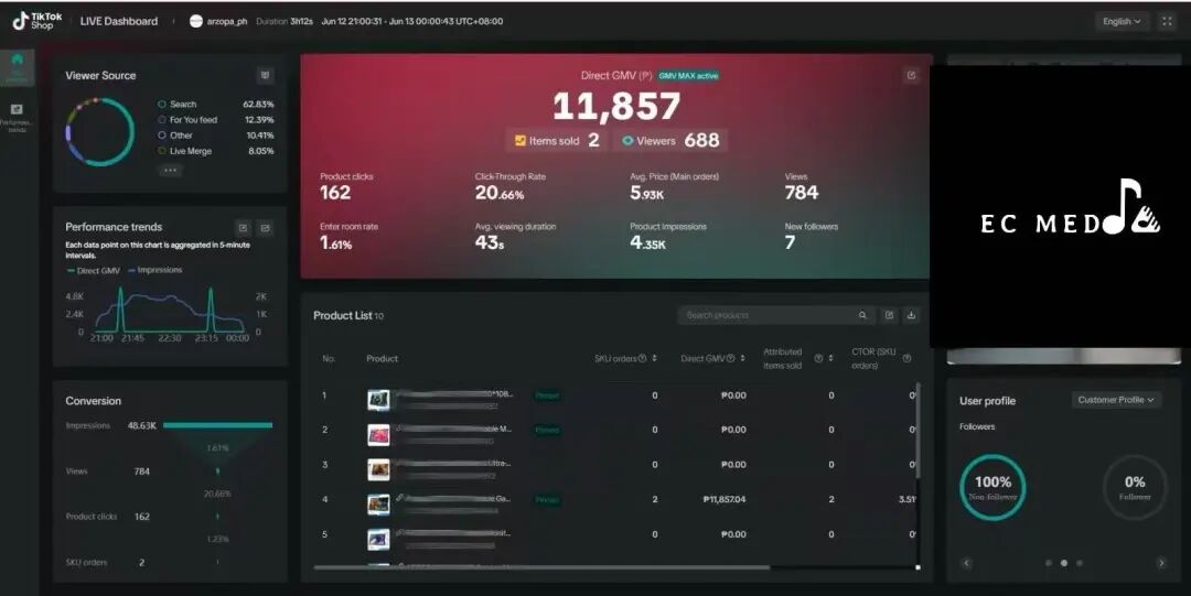 这次,EC Media直播团队将用多场3C类直播后台数据,揭示菲律宾市场的真实潜力。