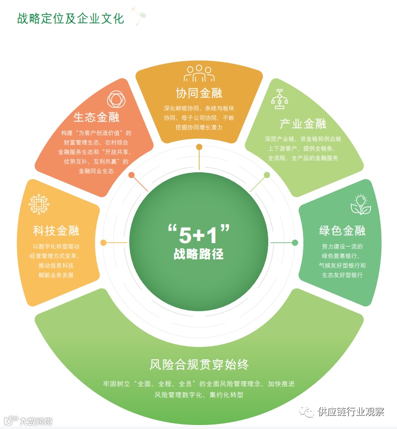供应链金融科技方面,邮储银行迭代供应链金融核心系统,优化大数据风控、交易背景自动核查等功能 ;部署智能薪支付结算产品,完善场景综合服务 ;对外开放标准化接口,提供账户清分服务。