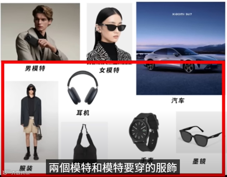 七七在视频里测试了一个非常复杂的指令:上传一辆车、两位模特和他们要穿的衣服、戴的配饰,让AI生成一张两位模特靠在车旁的合影