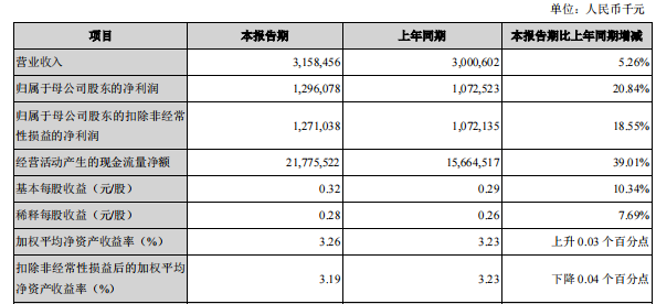 经营能力方面,一季报显示,苏州银行期内实现营业收入31.58亿元,同比增长5.26%;归属于母公司所有者的净利润12.96亿元,同比增长20.84%