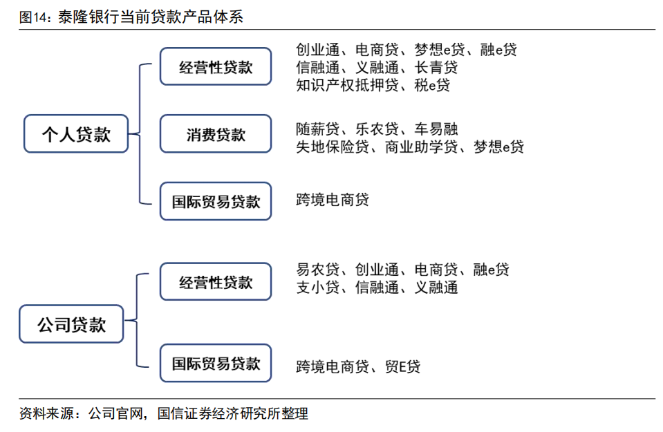 整体而言,差异化的产品和服务以及专业化的风险定价能力是泰隆银行小微业务的核心竞争力。受益于前期调研信息掌握充分以及审查流程完善等,泰隆银行不仅针对客户特征和需求推出差异化的信贷产品,同时实现了贷款服务“三三制”,即新客户三天、老客户三小时即可获得贷款。近年来随着流程的持续完善以及金融科技快速发展,客户获得贷款的时间也在持续缩短,很好满足了小企业融资需求“短小快急频”的特点。另外,泰隆银行根据客户实际情况,实行市场化的利率定价机制,基本做到了“一户一价”、“一笔一价”和“一期一价”。
