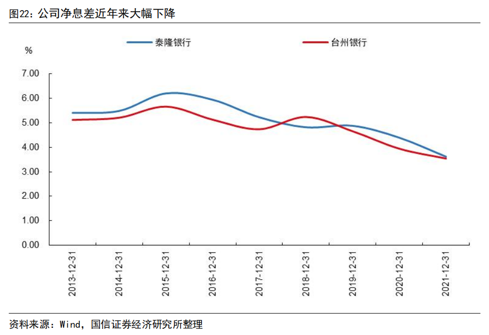 由于利率市场化深化,以及近几年受减费让利政策导向、同业竞争加剧等影响,公司净息差大幅下行。但公司在长期实践中摸索出了一套优异小微业务模式,规模增长较好,不良率长期维持在低位,因此盈利能力在银行业中仍处在较好水平。面对新的局势,泰隆银行积极寻求变革方向,一是围绕大行没有深耕的领域继续下沉,大力支持普惠金融。二是谋求综合化金融模式转型,为客户提供更优质的服务。