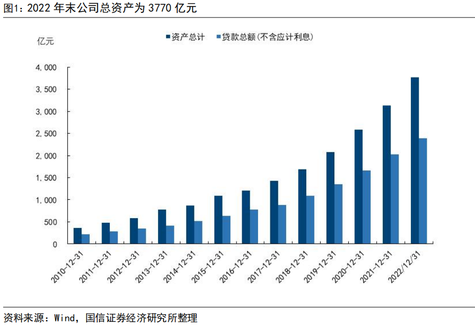 前身台州市泰隆城市信用社成立于1993年,2006年8月改制为浙江泰隆商业银行。公司自成立之初就始终坚持小微金融服务商市场定位,2022年末公司贷款100万元以下客户户数占比91.1%。2022年末机构数合计393家(不包括村镇银行),覆盖了浙江、上海和苏州。期末总资产3770亿元,贷款总额2394亿元,其中台州市贷款占25.7%,浙江省其他区域占52.3%,上海市占11.6%,江苏省占5.7%。长三角民营经济发达,公司小微业务空间广阔。