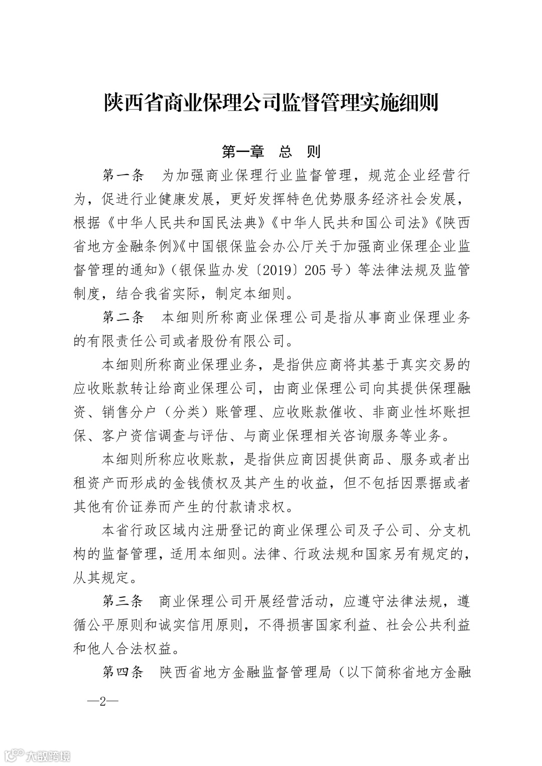 近日,陕西省地方金融监督管理局正式印发《陕西省商业保理公司监督管理实施细则》(简称“监管细则”)。