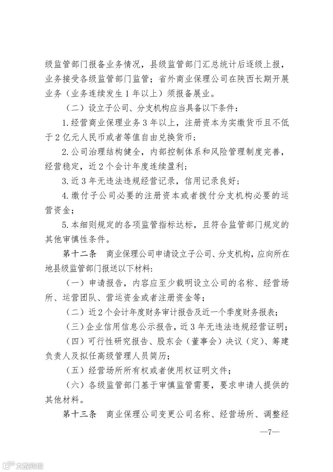 和此前公开的《征求意见稿》相比,细则对陕西辖内商业保理跨区域经营监管略有调整,将此前的在陕西业务长期开展业务的保理公司必须设立分支机构、子公司调整为必须报备展业。