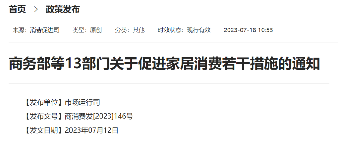 家居消费涵盖家电、家具、家纺、家装等多个领域,是居民消费的重要组成部分,是人民对美好生活需要的直接体现。为贯彻落实党中央、国务院决策部署,释放家居消费潜力,巩固消费恢复发展势头,增强消费对经济发展的基础性作用,经国务院同意,现将有关事项通知如下:
