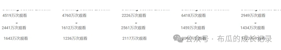 但播放量却很惊人,多个视频达到几万几十万,上千万的视频也有好几十个。