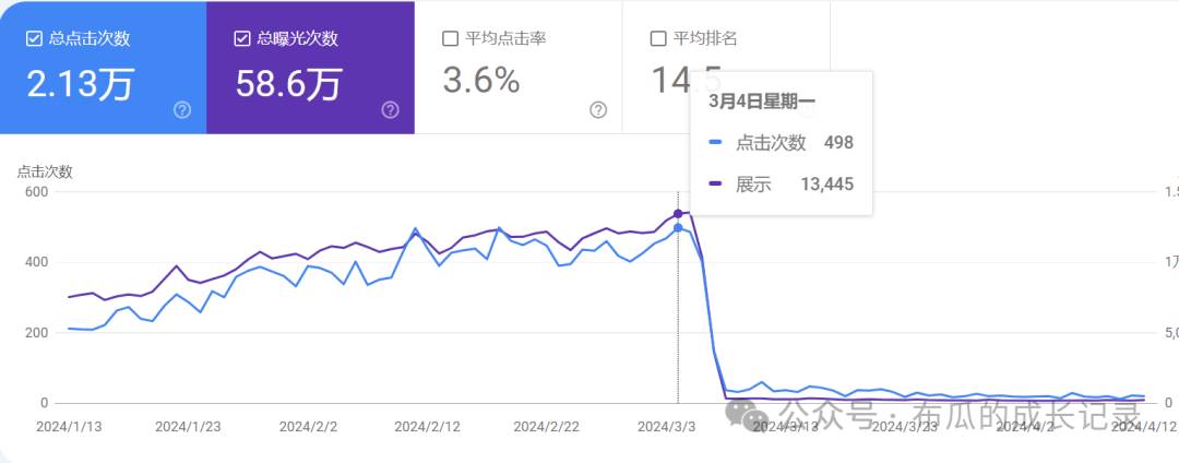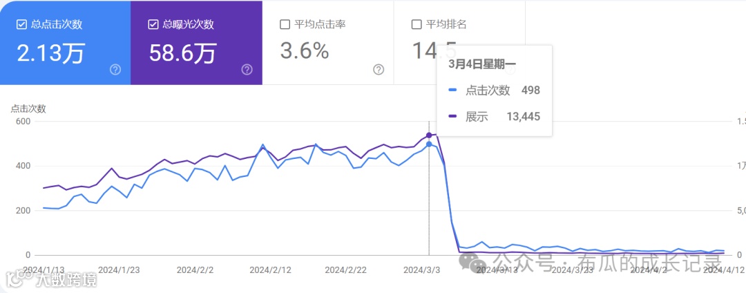 然而,就在我以为找到人生答案的时候,2024年3月5号,一场谷歌算法更新如同一记重拳,让我的网站流量瞬间归零,收入断崖式下跌。