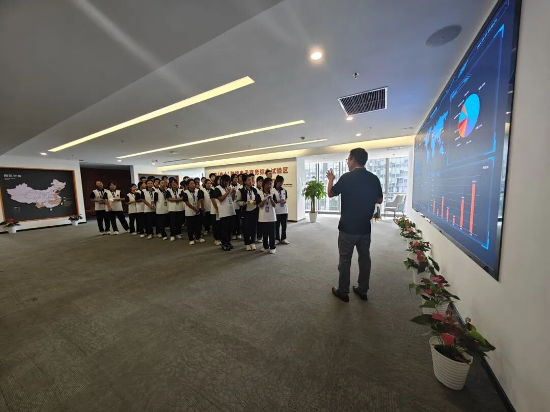 在园区总经理张英明的亲自带领下,学生们穿梭于繁忙而有序的办公区域,亲眼见证了跨境电商企业日常运营的每一个细节。从产品选品到仓储管理,从营销推广到客户服务,每一个环节都透露出跨境电商行业的独特魅力与无限活力。这种直观而深刻的体验,让学生们对跨境电商的运作机制有了初步但全面的认识。