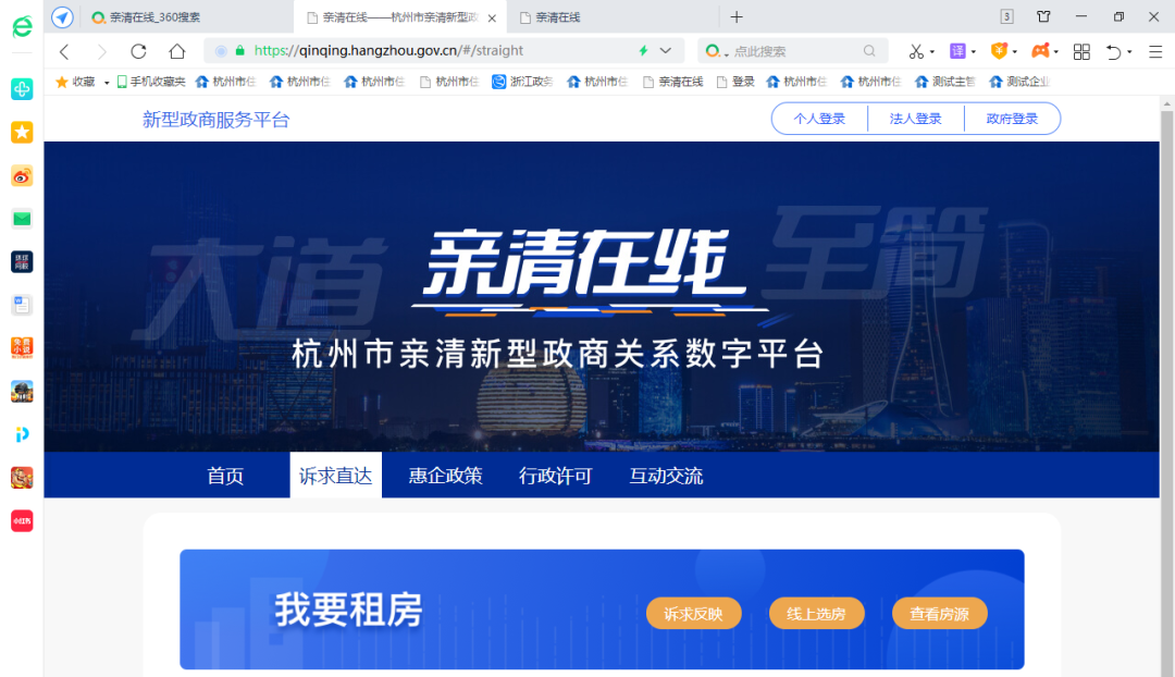 申报企业注册并登录浙江政务服务网法人账号,选择“诉求直达”模块——查看房源;