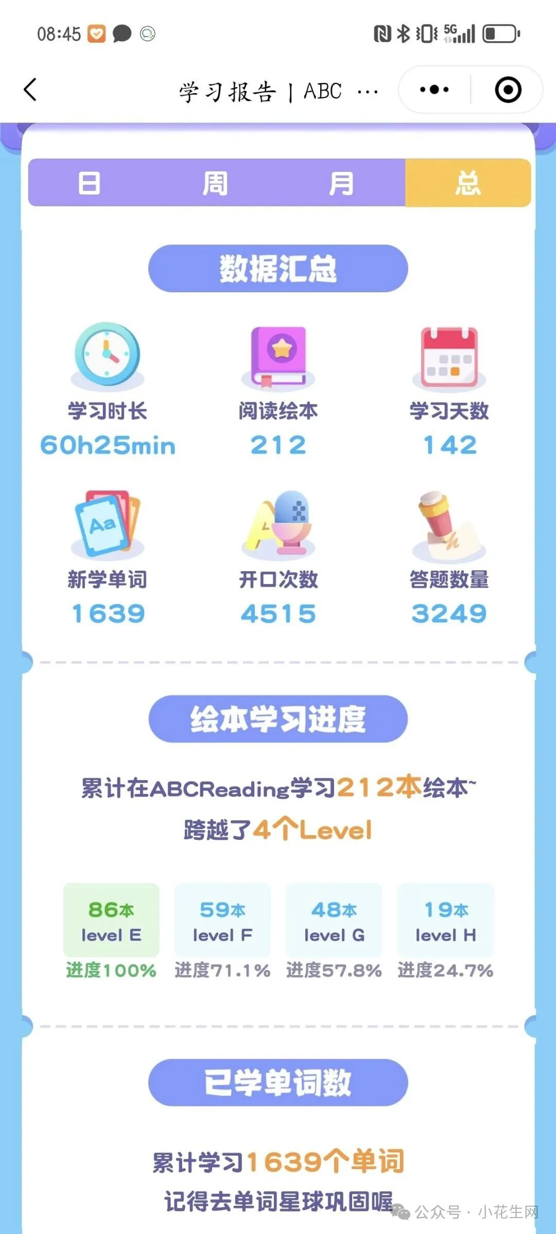 2024年顺利完成了ABC Learning 299天的打卡,并成功获得了返现奖励,最大的收获就是让我们养成了阅读习惯;8月份开始ABC Reading 的假期打卡,相比之下ABC Rearning的绘本难度要低一些,截至12月底我们共完成了4个级别的跨越。