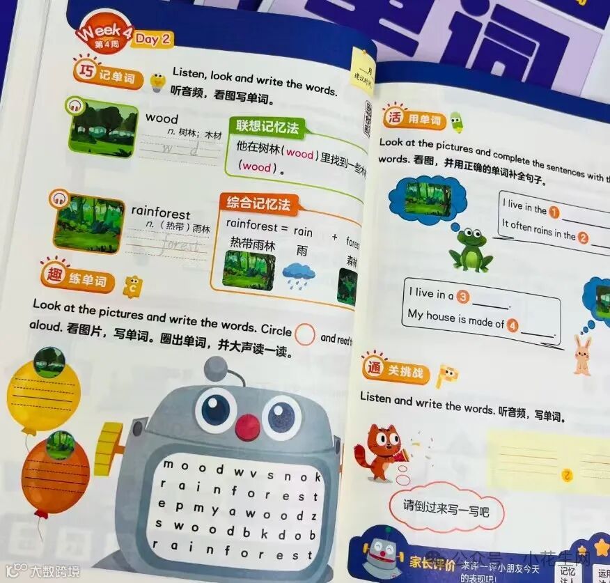 我们在用的《学而思·单词天天练》很不错,色彩鲜艳,课后习题也很有趣,设计也很合理,也会反复涉及前面学过的知识点。我们基本一周多完成一本,目前已经刷完3本了,明年继续坚持吧!