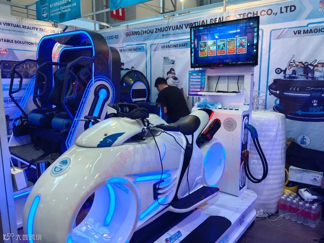 在广州卓远虚拟现实科技有限公司的摊位前,一位东南亚境外采购商表示,对VR系列新产品“旋转360”,也就是一款双人座的360度旋转飞行模拟器,很感兴趣,他幽默地说,不知道这款产品能不能真的让人“飞起来”。