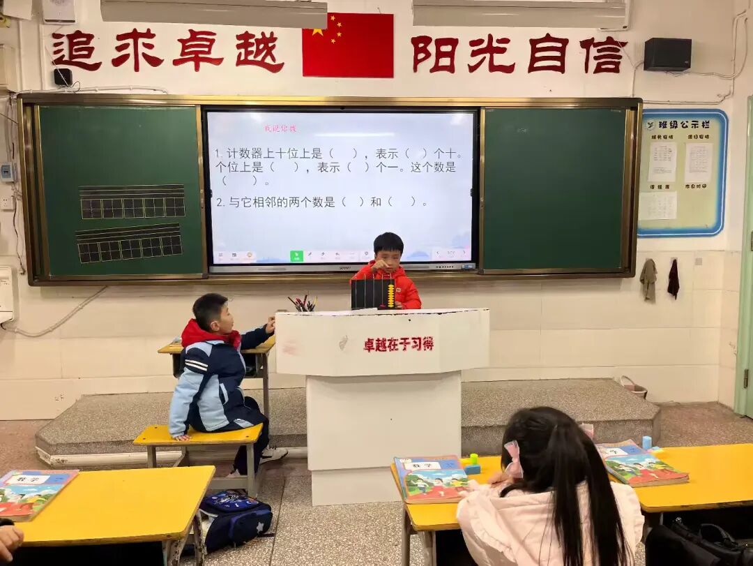 学生结合关卡中的题目进行具体的实操,边读数边在计数器上拨数,进一步加深了学生对数位的认识,强化了学生对数的组成的理解。