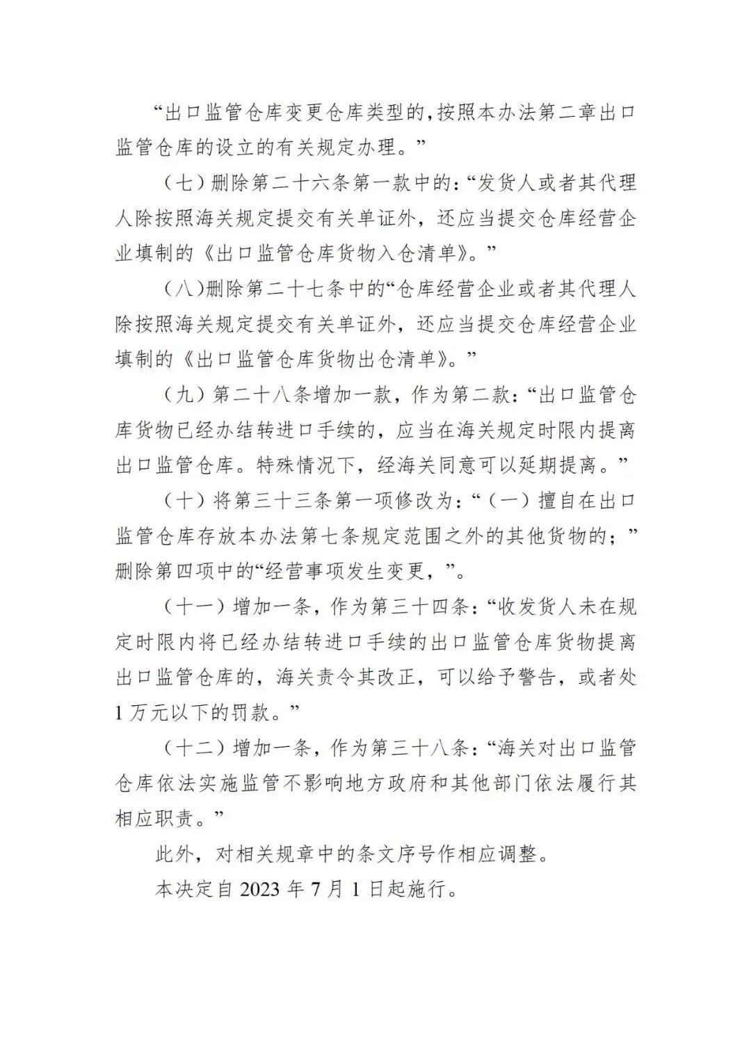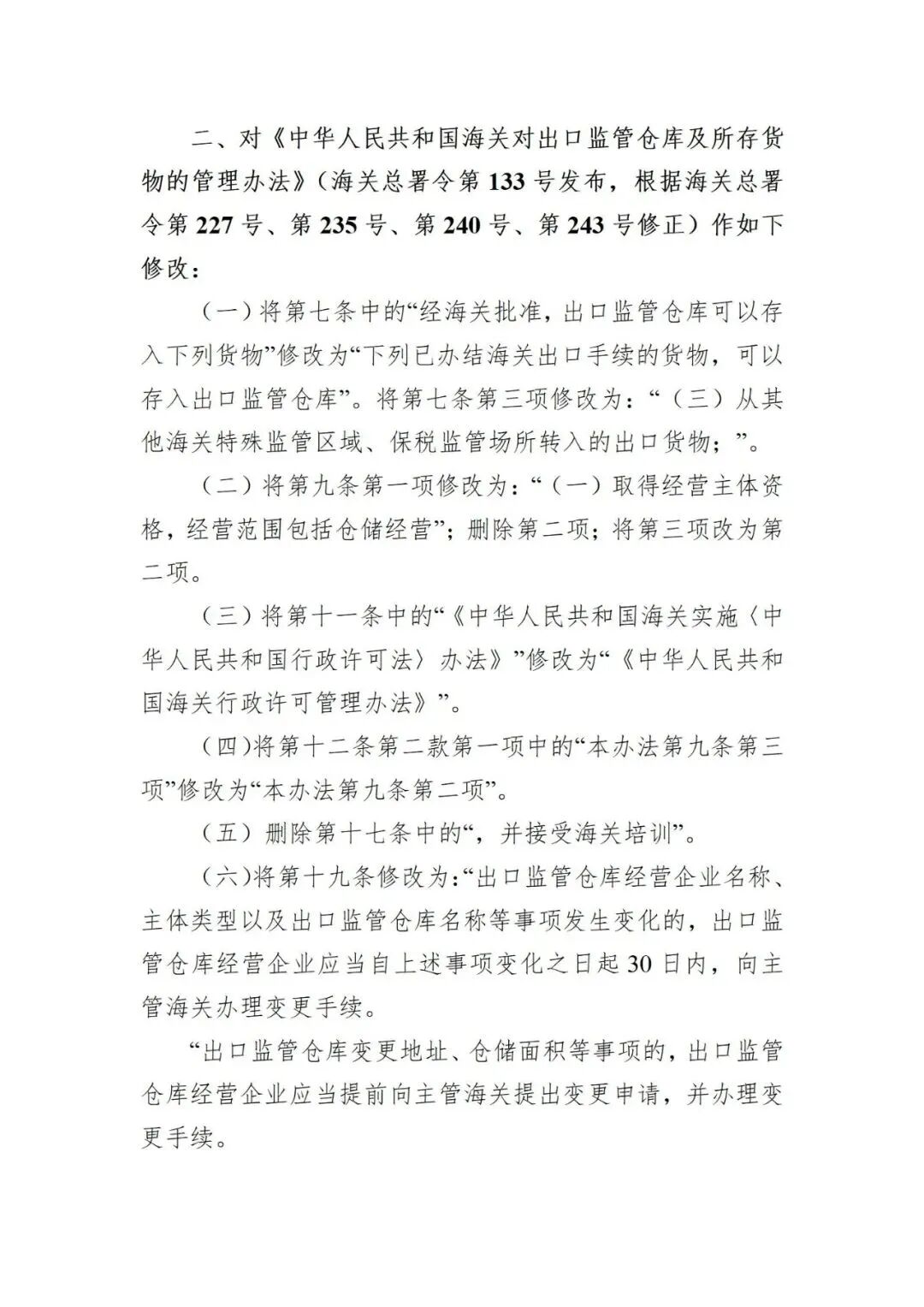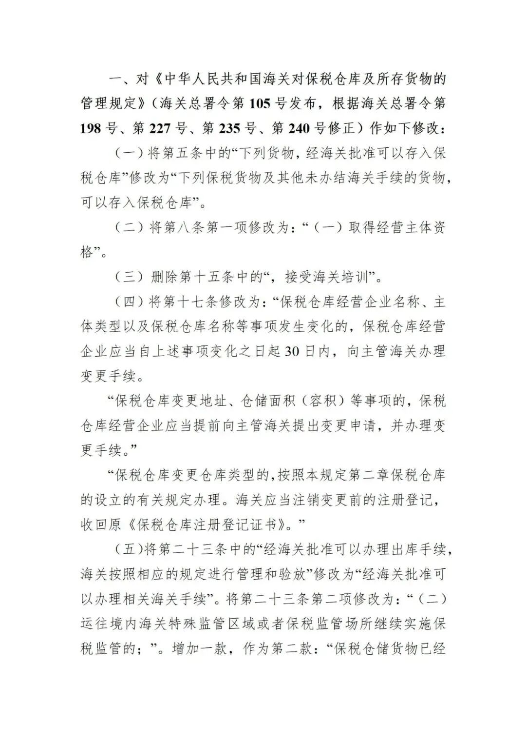 近日,为贯彻落实党的二十大精神,进一步强化和规范全国保税仓库和出口监管仓库(以下简称“两仓”)监管,支持“两仓”高质量发展,海关总署公布《海关总署关于修改部分规章的决定》,对《中华人民共和国海关对保税仓库及所存货物的管理规定》《中华人民共和国海关对出口监管仓库及所存货物的管理办法》等规章进行修改。