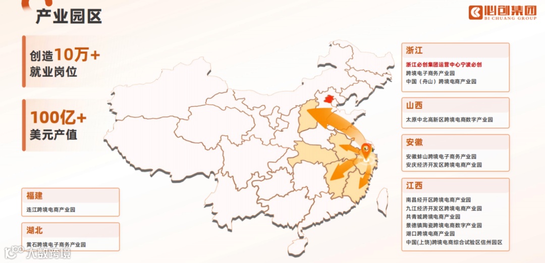 集团整合跨境电子商务主流平台、行业龙头生态服务商,与各级政府深度沟通合作,先后在浙江、江西、安徽、山西、湖北等省十余个城市设立14个跨境电商产业园。以专业的服务、创新的模式、丰富的资源,为园区及入驻企业提供了全方位的支持