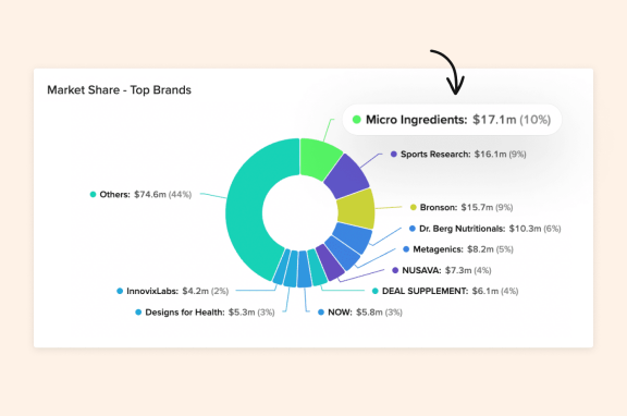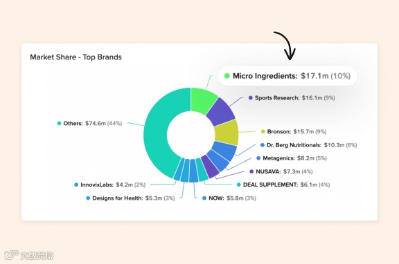 图:Micro Ingredients在过去12个月的销售额与市占比