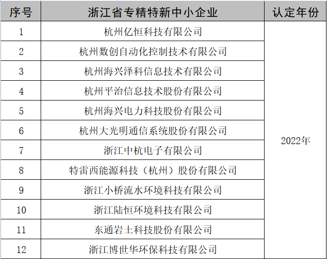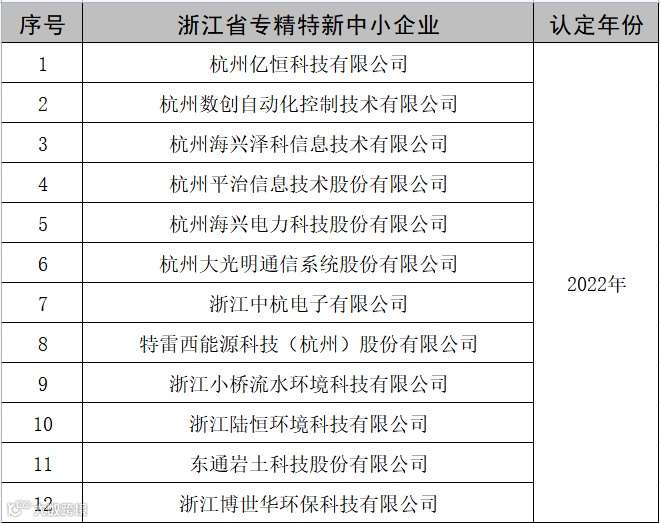 近日,杭州市经信局公布了2022年度浙江省专精特新中小企业公示名单(杭州市) ,智慧城辖区杭州亿恒科技有限公司、杭州数创自动化控制技术有限公司、杭州海兴泽科信息技术有限公司等12家企业入选,再创新高。