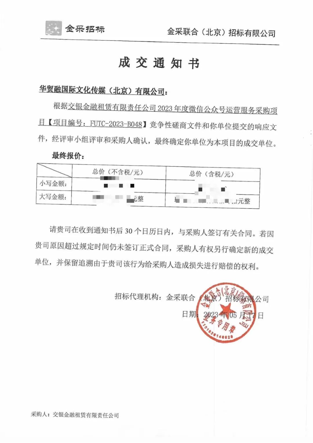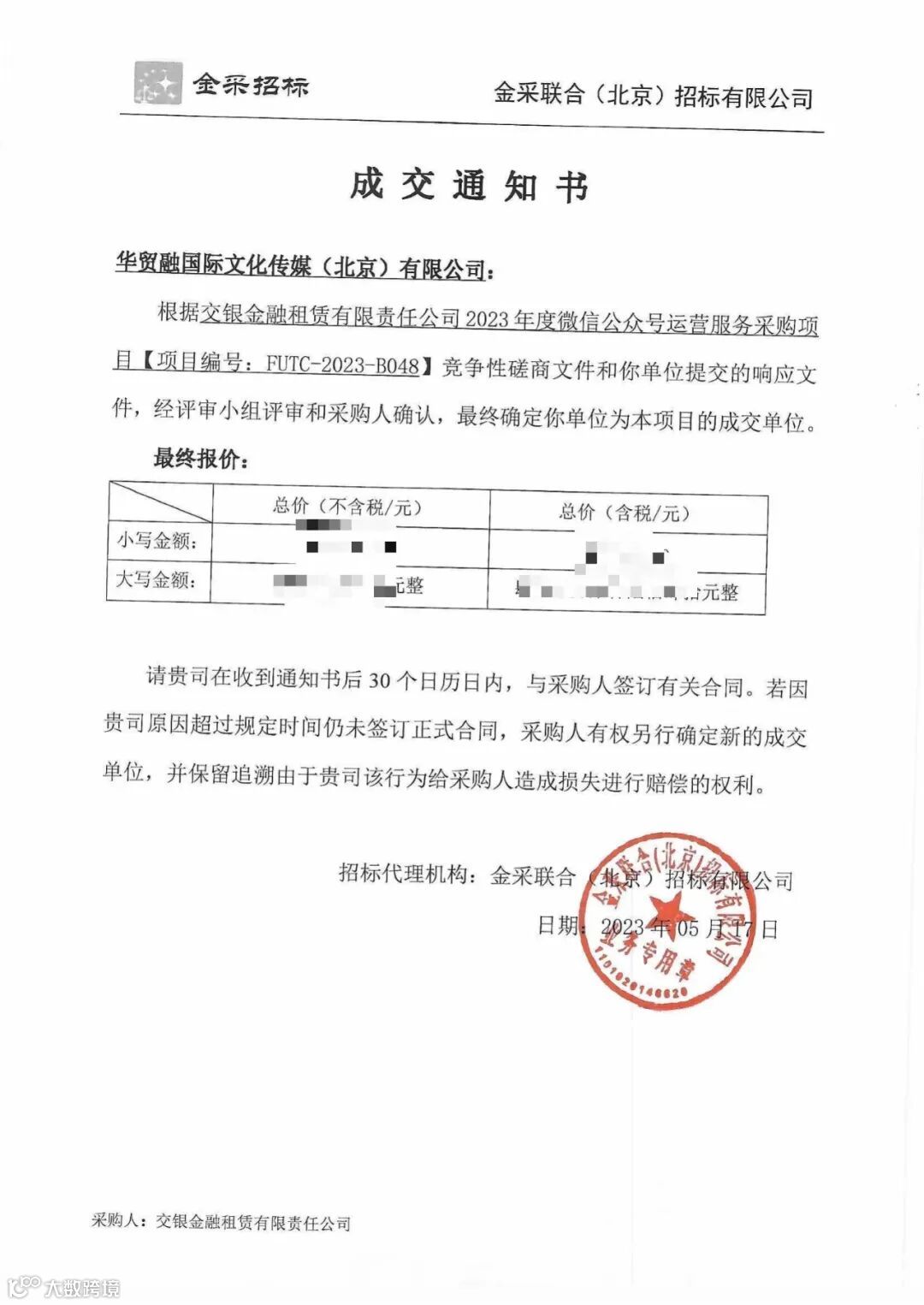 值得一提的是,华贸融公司旗下传媒深耕融资租赁和金融租赁多年,如本号:融资租赁和金融租赁圈粉丝数接近30万,一直持续报道金融租赁行业十多年。这次中标交银金融租赁公司的微信公众号代运营项目,是华贸融公司服务的第三家头部金融租赁公司,现在一直在服务的有浦银金融租赁公司、太平石化金融租赁公司,均为实缴资本TOP10机构!