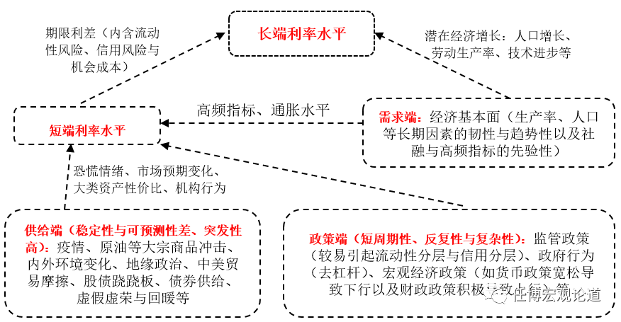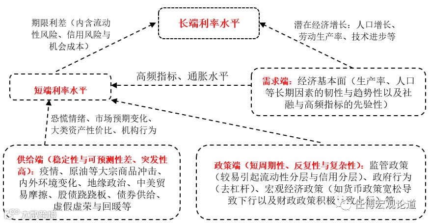 (四)整体来看,利率的影响因素可以分为需求端、政策端和供给端三个部分。其中,供给端以及政策端主要有通过影响短端利率水平来间接影响长端利率水平,而需求端则是长端利率水平的最重要决定因素。