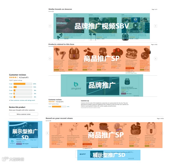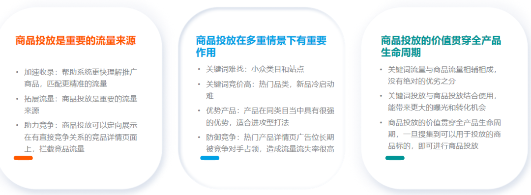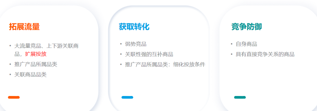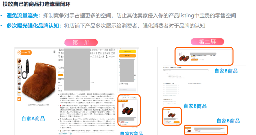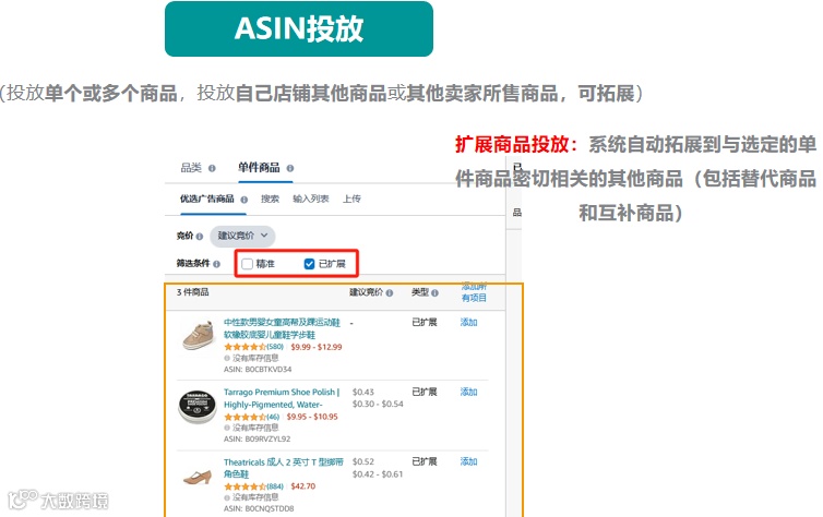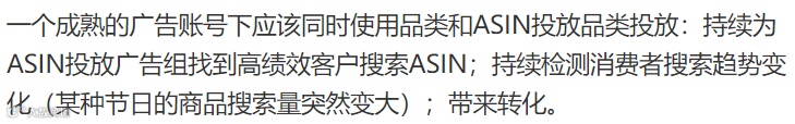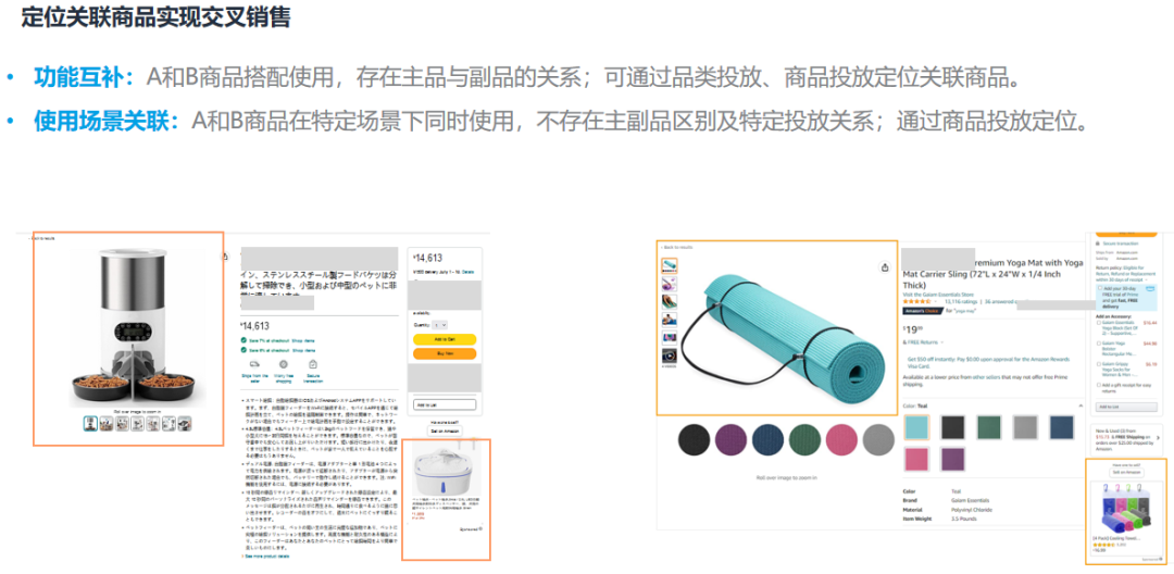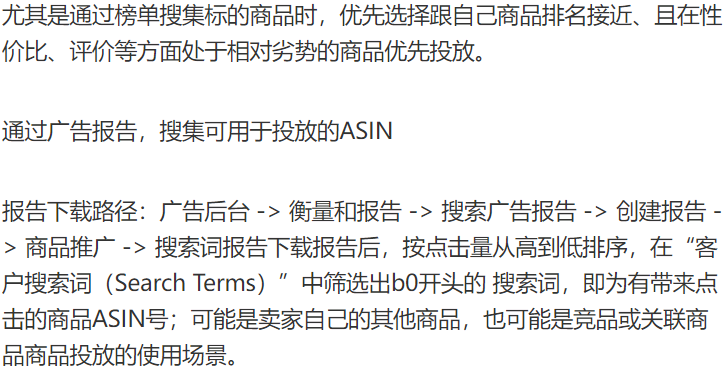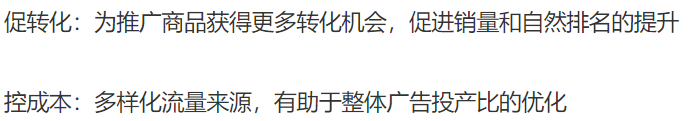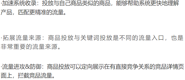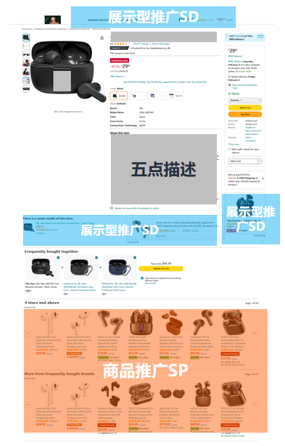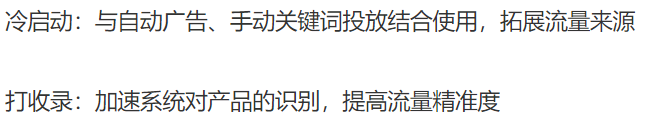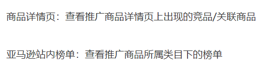 ASIN投放:低ACOS出单;低花费占据自身链接的广告位置;定向投放商品后,广告可能出现在商品详情页。