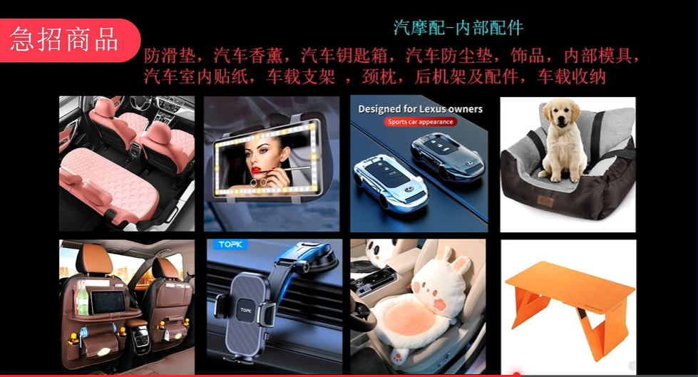 汽车电子产品包括行车记录仪,车内氛围灯,汽车香薰当前在海外都比较畅销,另外一些车载加湿器、车载的充电器的需求也呈上升趋势。