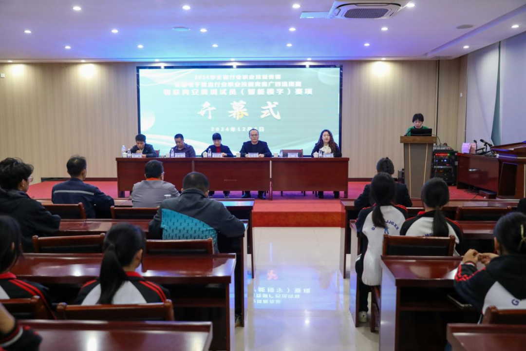 在12月6日下午的开幕式上,广西计算机用户协会副秘书长张琳女士致辞,强调了物联网安装调试员在现代智能楼宇建设中的重要作用,并对所有参赛选手寄予厚望。我院党委委员、副院长黄红波表示学院将全力支持本次竞赛的举办,为参赛选手提供良好的竞赛环境和周到服务。随后,裁判代表和参赛选手代表依次上台宣誓,最后由广西壮族自治区职业技能鉴定中心科长陈富友宣布开幕。