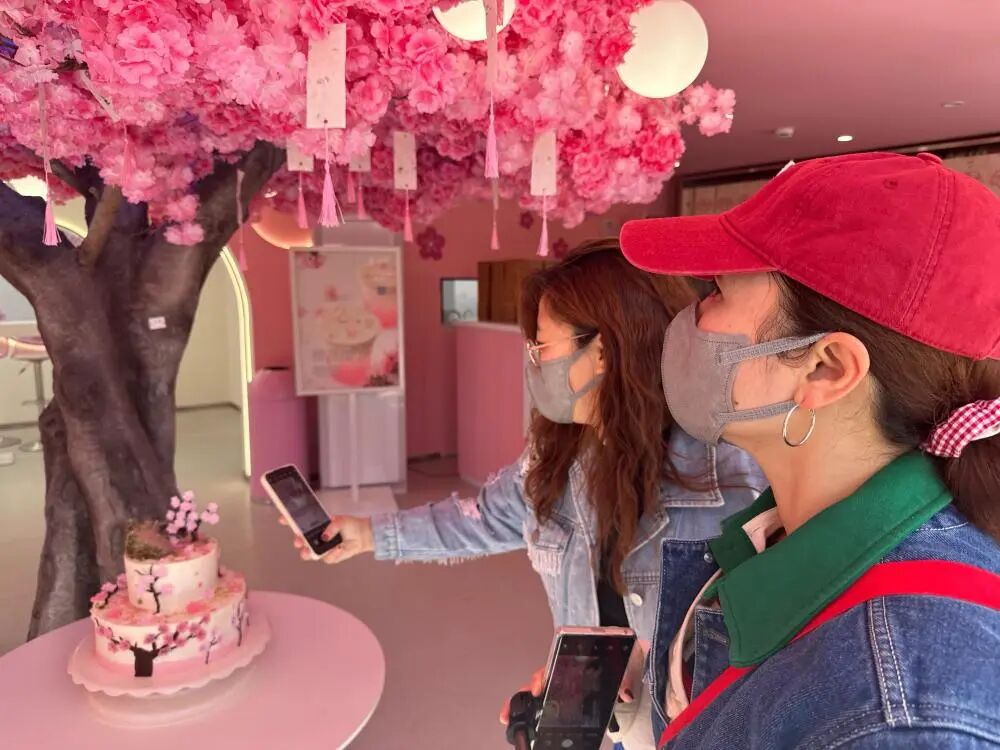 除了看花赏景,丰富多样的文创新品也吸引了游客的注意。樱花冰淇淋、樱景冰箱贴、樱花手提袋……玉渊潭公园内的“樱花商店”让游客与春天撞个满怀。“粉粉的色调,很有春天的感觉。”广州游客罗秋珠品尝了最新款樱花冰淇淋后,又挑选了樱花手链、徽章等商品。