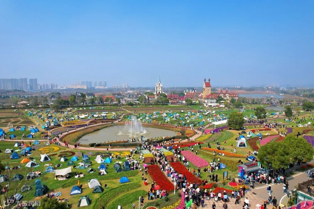 在武汉市郊赏花热门目的地花博汇,千亩花海已全面盛开。近万株粉红樱花树、数以百万朵郁金香,与雏菊、洋水仙、紫罗兰等一道,为游客呈现如油画般绚丽多彩的景象。景区3月推出沉浸式夜游项目“知音花月夜”,将自然景观、艺术表演和科技手段相融合,让游客全天候体验赏花文化盛宴。