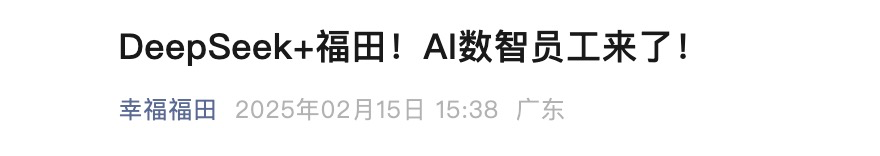 另据江苏卫视2月16日消息,江苏南京、苏州、无锡、常州、盐城、连云港等地的城市算力网陆续宣布上线DeepSeek系列大模型。本土化部署后,DeepSeek在政务、金融、医疗、教育、电子信息等面向消费者的领域也有广泛应用。