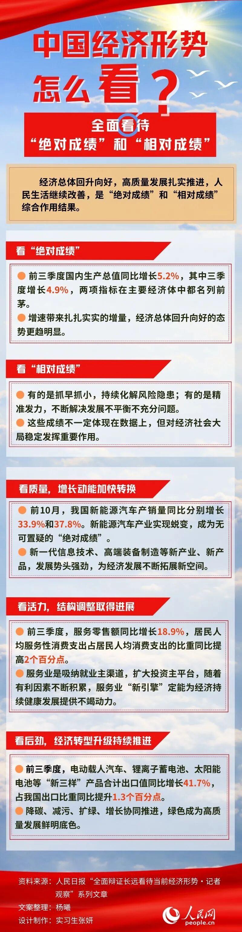 今年以来,我国经济总体回升向好,高质量发展扎实推进。读懂中国经济,要看到成绩、坚定信心,也要正视问题、直面挑战。只有全面辩证长远看待,才能准确把握经济发展中的积极因素,形成推动高质量发展的强大动力。身处百年未有之大变局,把握优势、坚定前行信心,定能推动我国经济乘风破浪向前、迈上更高台阶。