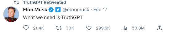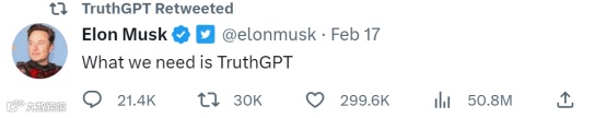 值得一提的是这不是马斯克第一次考虑打造 TruthGPT。他在2月17日曾经发推说,我们需要的是 TruthGPT。